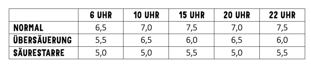 Typischer Tagesverlauf des Urin-pH (Orientierungswerte):